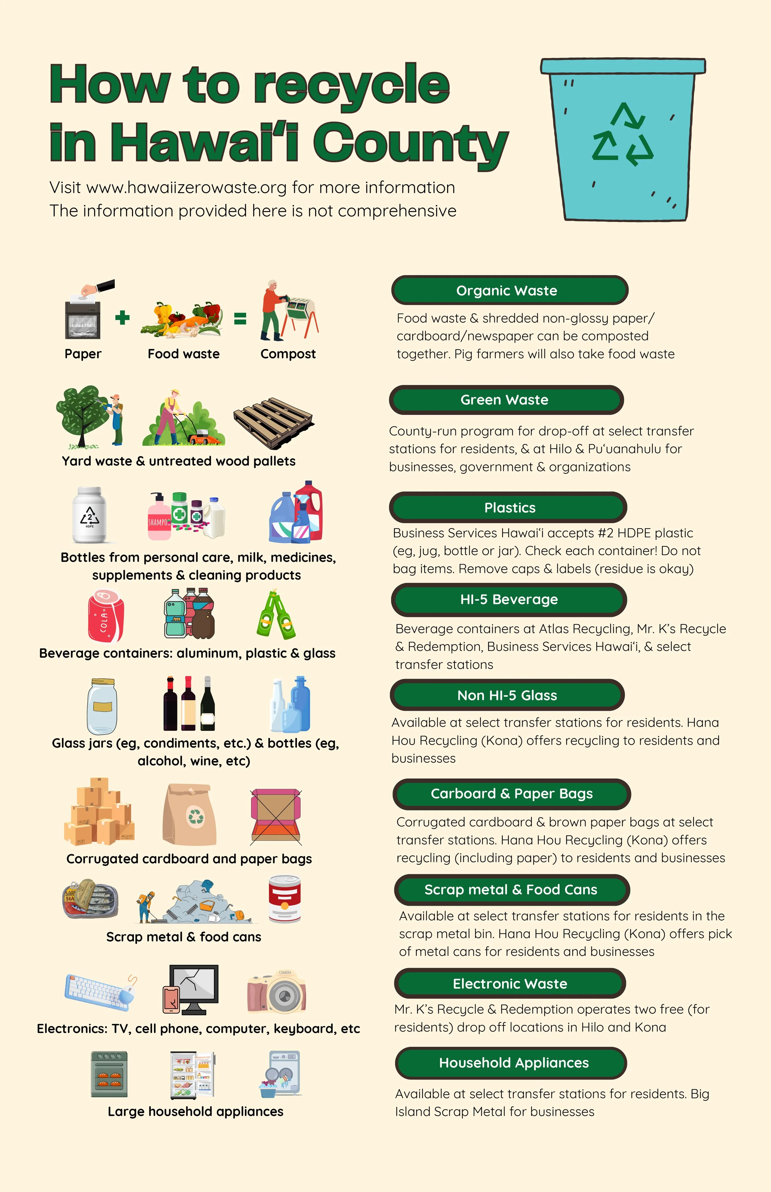 Recycling, Where and What How to Recycle in Hawaiʻi County Poster Learn More How to Turn Household Waste into CompostLā Honua/Earth Day 2023 Learn More